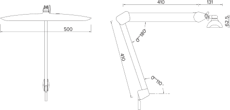 Струбцина — надежное крепление к любой поверхности (тумба, кушетка, стол) толщиной от 1 см до 7 см.